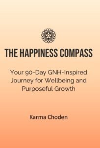 The Happiness Compass is a guided workbook that helps you rediscover joy, balance, and clarity in everyday life. Grounded in Bhutan’s Gross National Happiness framework, this 90‑day journey blends timeless wisdom with simple daily practices.